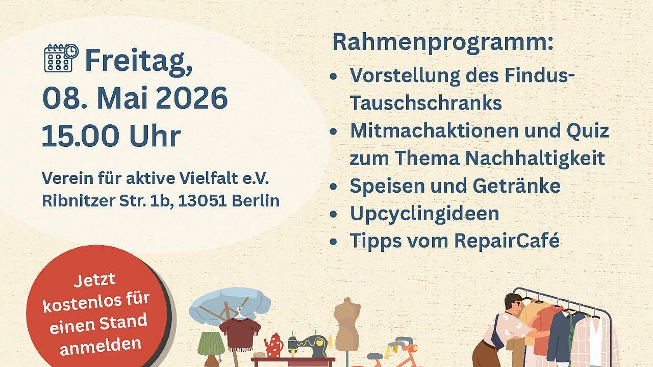 Zusätzlich gibt es einen Flohmarkt, meldet euch dafür gerne an (booking@vav-lichtenberg.de). Es warten auch leckere Snacks und Upcycling Workshops auf euch.