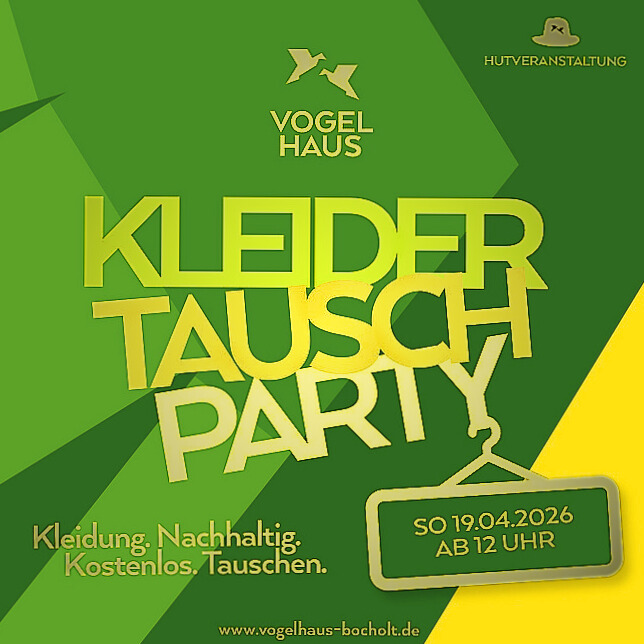 Es ist wieder soweit: Am 19.04.2026 ab 12 Uhr laden wir zu unserer Kleidertausch Party ein! Bringt uns gerne die Tauschkleidung bereits am Wochenende zuvor, damit wir alles so gut wie möglich für den Tausch vorbereiten können. Alle die gern beim vor/während/nachbereiten ehrenamtlich helfen möchten sind herzlich willkommen. Viele Hände schnelles Ende!