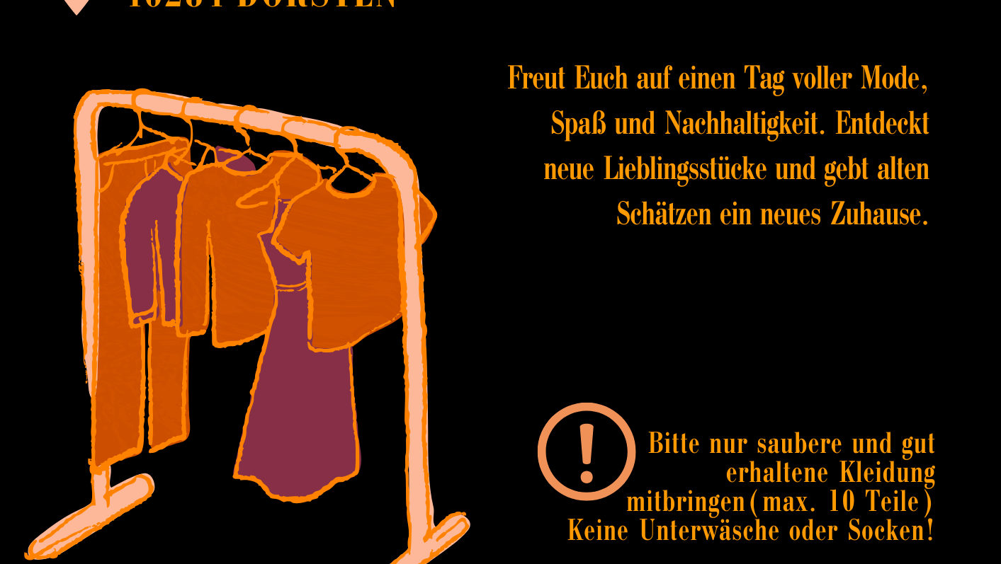 Freut euch auf einen Tag voller Mode, Spaß und Nachhaltigkeit. Entdeckt neuen Lieblingsstücken und gebt alten Schätzen ein neues Zuhause.