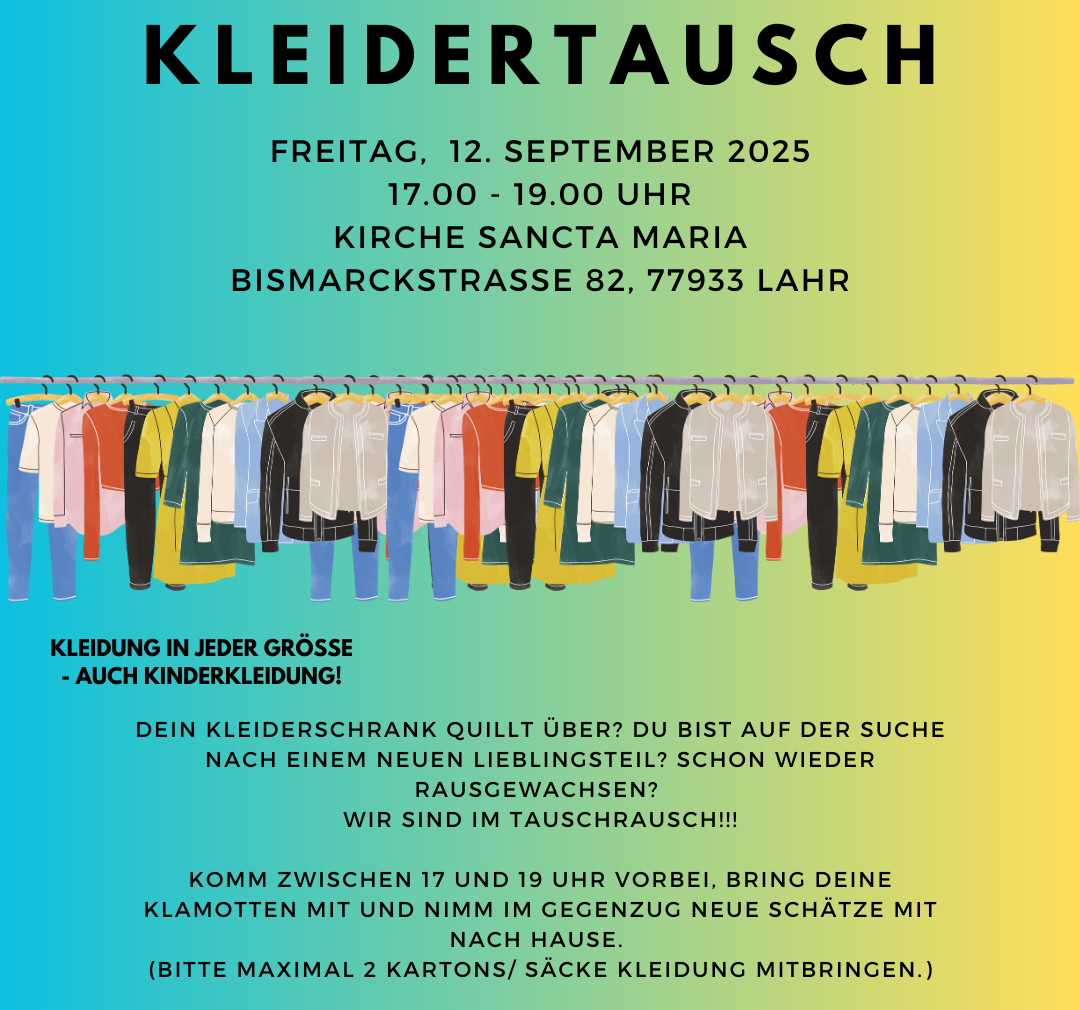 (bitte maximal 2 Kartons/ Säcke Kleidung mitbringen.)