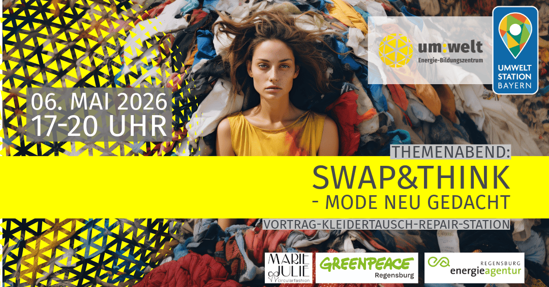 Gemeinsam mit Greenpeace Regensburg, MarieJulie Circularfashion, dem VerbraucherService Bayern und der Energieagentur Regensburg mit um:welt als Veranstaltungsort werfen wir einen Blick hinter die Kulissen der Modeindustrie und zeigen konkrete Alternativen auf.