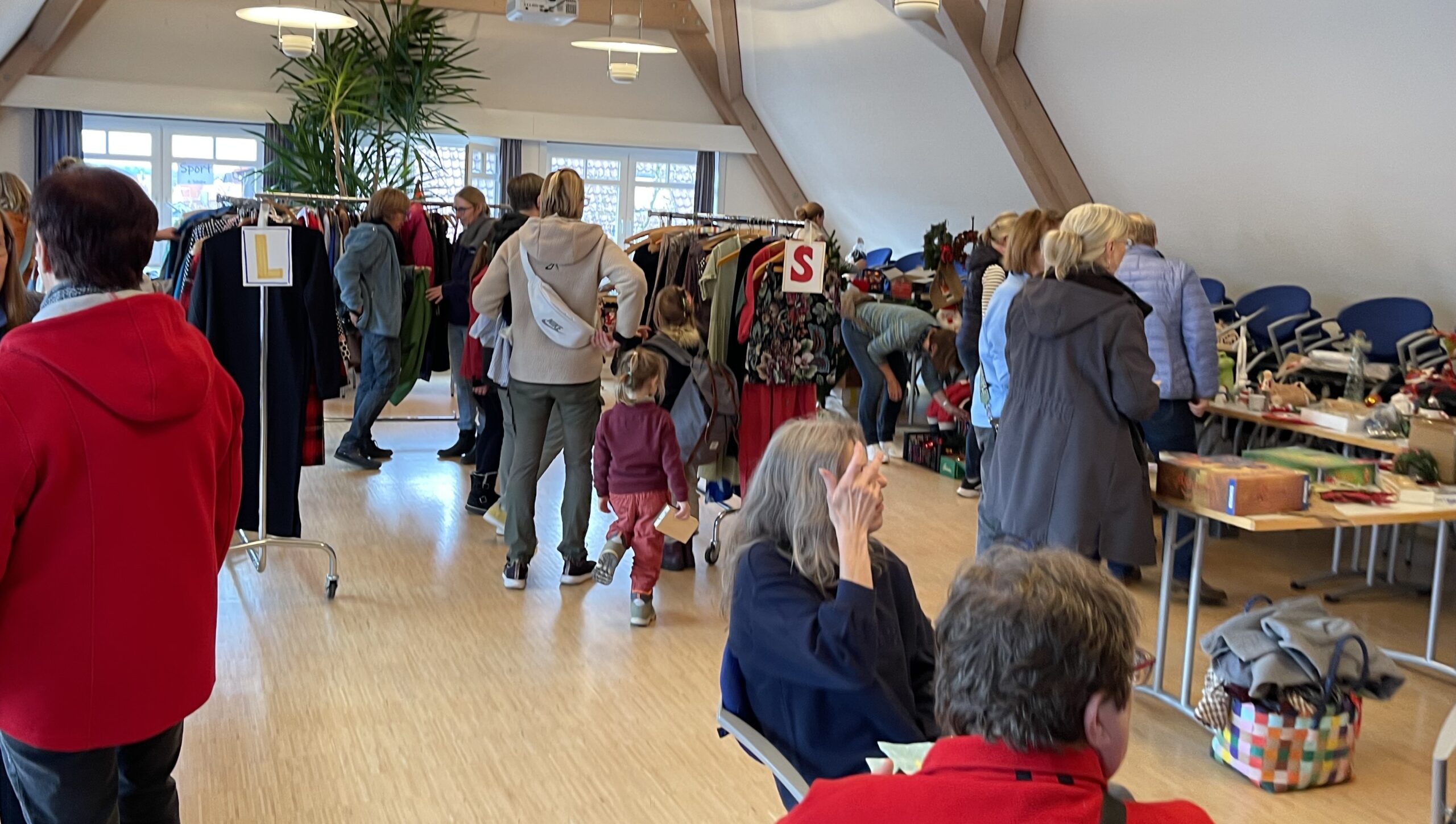 Jeweils maximal etwa 15 gut erhaltene und saubere Kleidungsstücke, Schuhe, Accessoires für Erwachsene und Dekoartikel können mitgebracht werden. Diese werden in die entsprechenden Bereiche einsortiert, dann kann nach Herzenslust neu ausgesucht werden. Bekleidung für Männer ist ebenfalls willkommen.