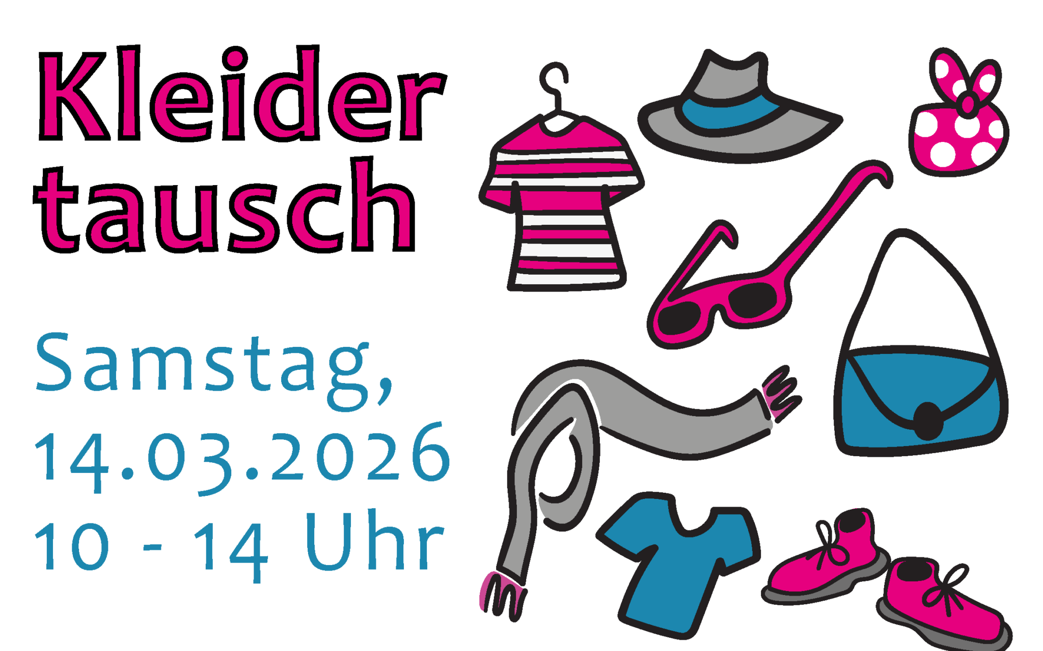 Am Kleidetauschtag bist du eingeladen nach Lust und Laune zu stöbern und anzuprobieren. Spiegel und Umkleiden sind vorhanden.