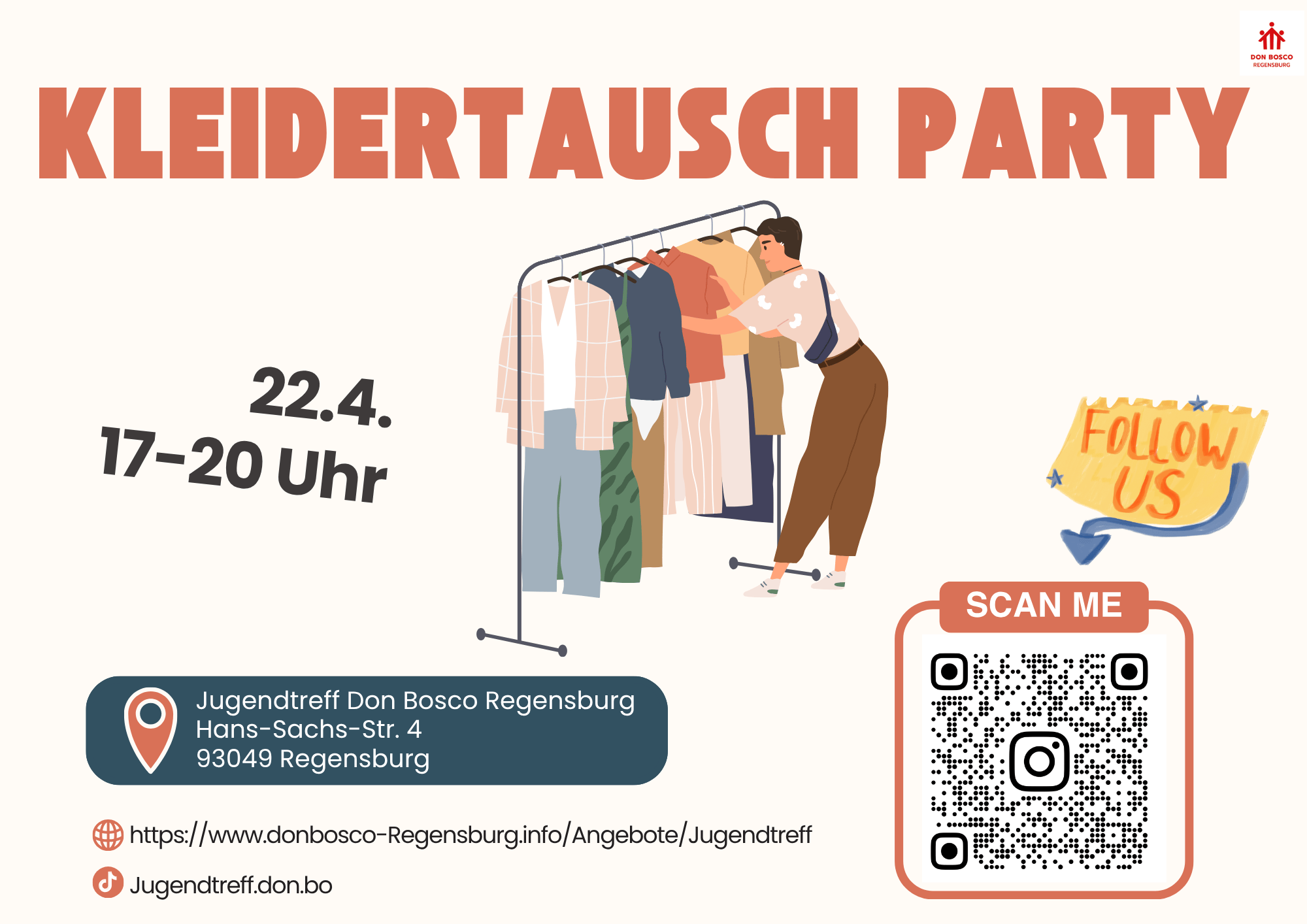 Am 22.04. steigt unsere Kleidertauschparty! 👕✨ Komm vorbei, bring Klamotten mit, die du nicht mehr brauchst, und nimm dir neue Lieblingsstücke mit nach Hause. Du kannst auch einfach nur stöbern und etwas mitnehmen – ganz ohne etwas mitzubringen! 💛 Wir freuen uns auf dich!