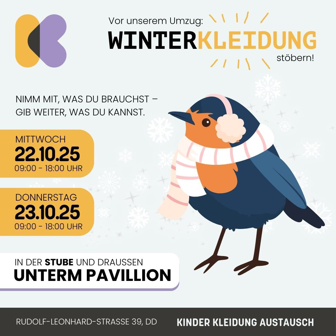 Umsonstmarkt für Kinder-Winterkleidung vom Kikla Die Vorbereitungen für unseren Umzug im November laufen auf Hochtouren – deshalb kann unser großer Wintermarkt dieses Jahr leider nicht stattfinden. Damit ihr euch trotzdem gut für die kalte Jahreszeit ausstatten könnt, öffnen wir am 22. & 23.10.25 von 09:00 bis 18:00 Uhr unsere Türen ein bisschen weiter: Wir stellen […]