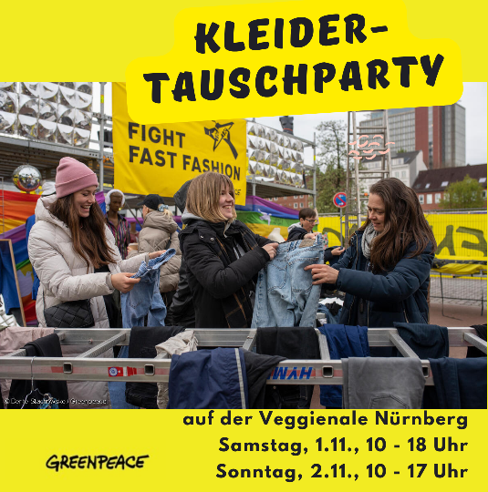 Greenpeace und die Veggienale kooperieren 💫 Auf mehreren Messen wird es auch eine Kleidertauschparty geben, am ersten Novemberwochenende sind wir in Nürnberg! Du kannst Kleidung mitbringen und tauschen. Es gibt allerdings keine 1:1-Tauschregel. Es ist also auch völlig in Ordnung, lediglich Teile mitzubringen oder sich etwas zu nehmen - solange es in einem gewissen Rahmen […]