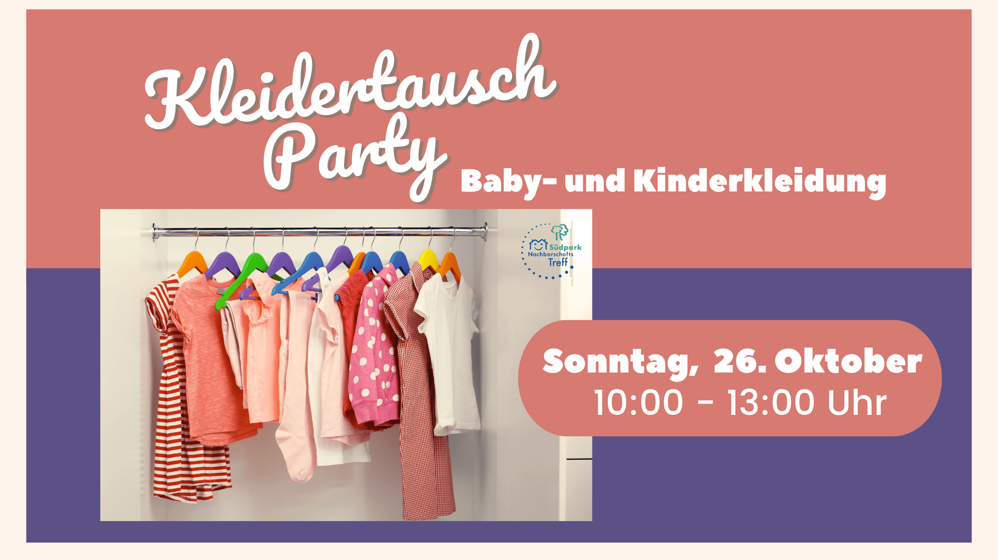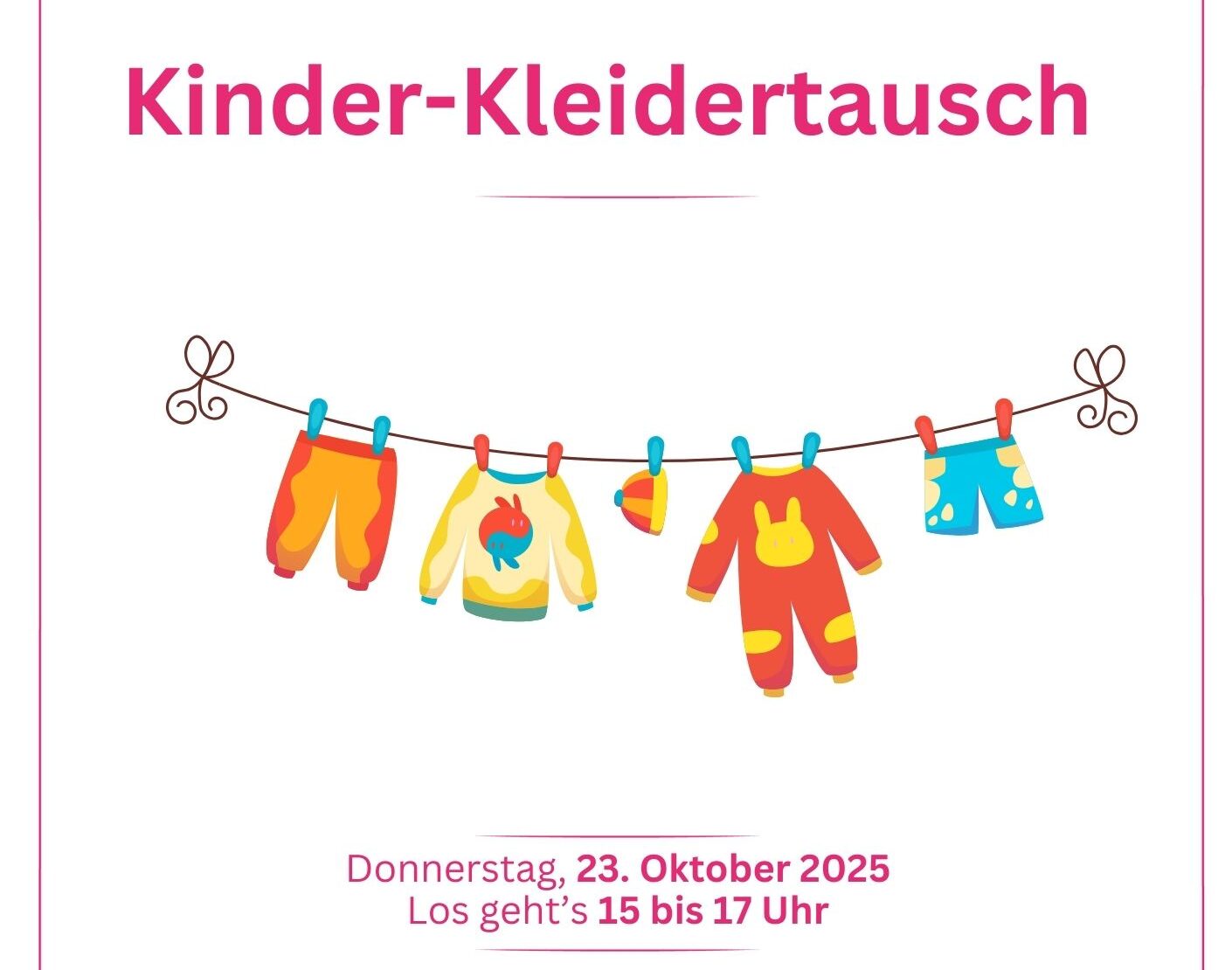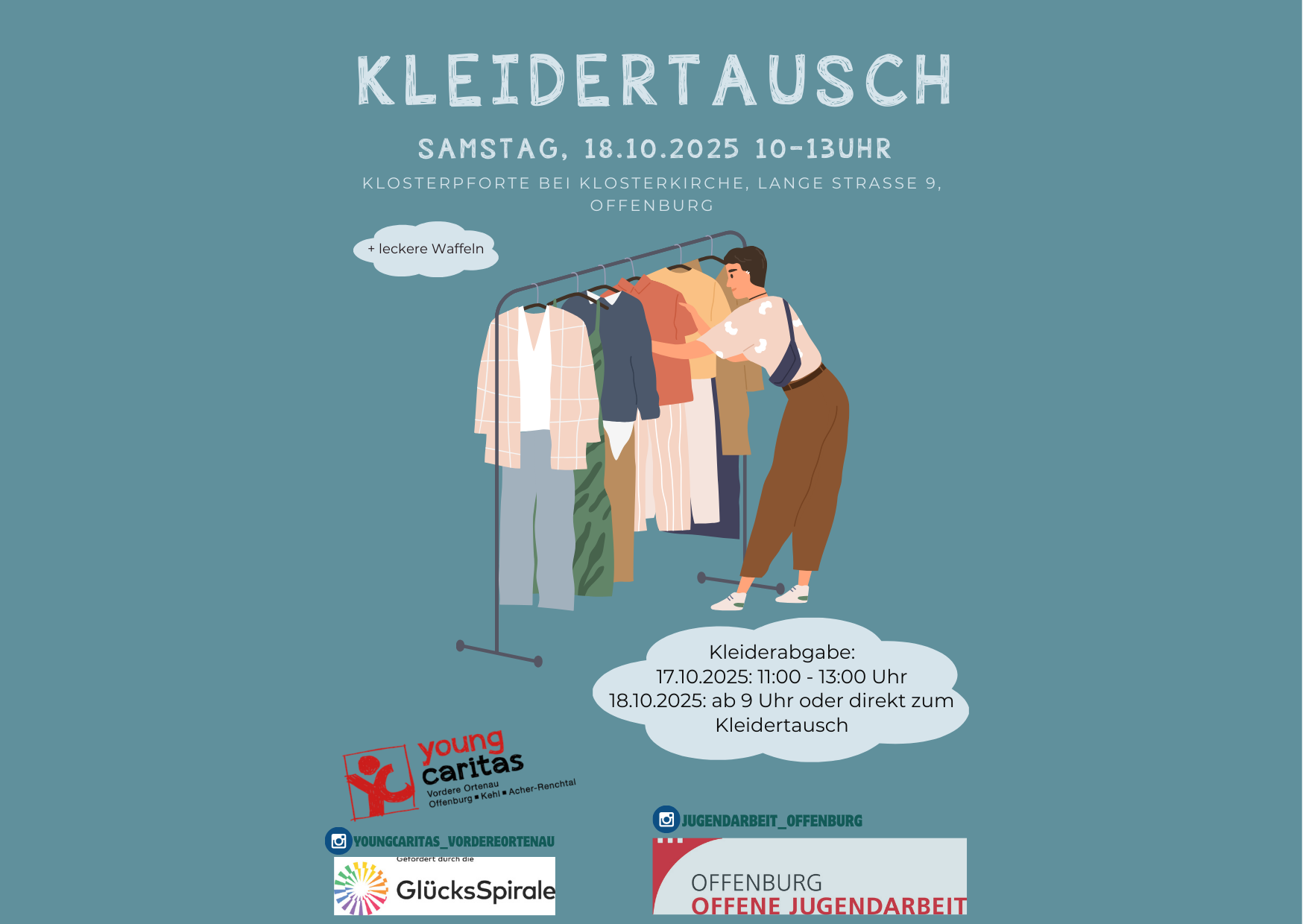 ![]() Zu viele Klamotten im Schrank? Bring deine aussortierte Kleidung, Schuhe, Taschen etc. (bitte keine Unterwäsche und Bademode) ➡️ entweder am 17.10 11-13 Uhr ➡️oder am 18.10 ab 9 Uhr oder direkt zum Kleidertausch Wichtig: ➡️Max. 8 Kleidungsstücke ➡️Alles sollte gewaschen & ohne Schäden sein – damit sich jemand Neues darüber freuen kann! Und dann? Schnapp […]