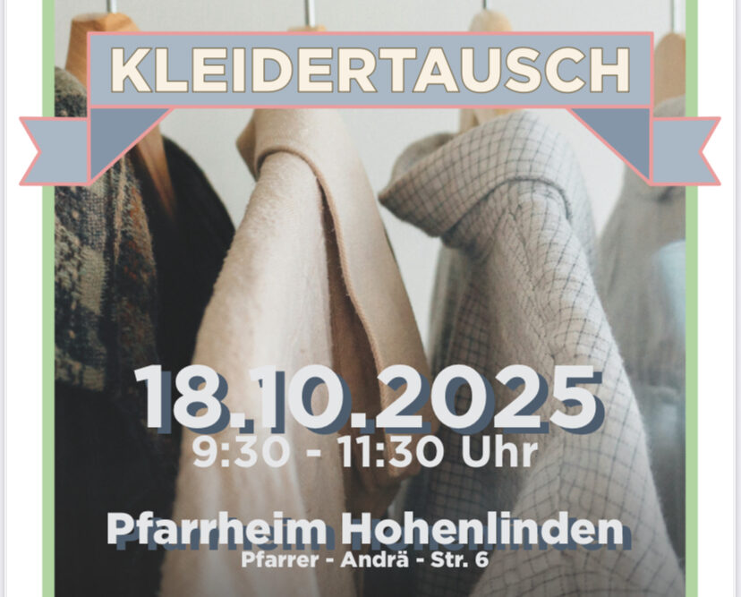 Am Freitag, den 17. Oktober findet ab 16.00 Uhr bis 18.00 Uhr ein Kleidertausch im großen Sitzungssaal im Rathaus (Bürgerplatz 1) statt. Dieser wird erneut organisiert von der Fairtrade Steuerungsgruppe des Klimabeirates der Gemeinde Eching. Hierzu können die Besucher bis zu 10 aussortierte, gewaschene und noch gut erhaltene Kleidungsstücke mitbringen. Die Kleidung muss nicht von […]