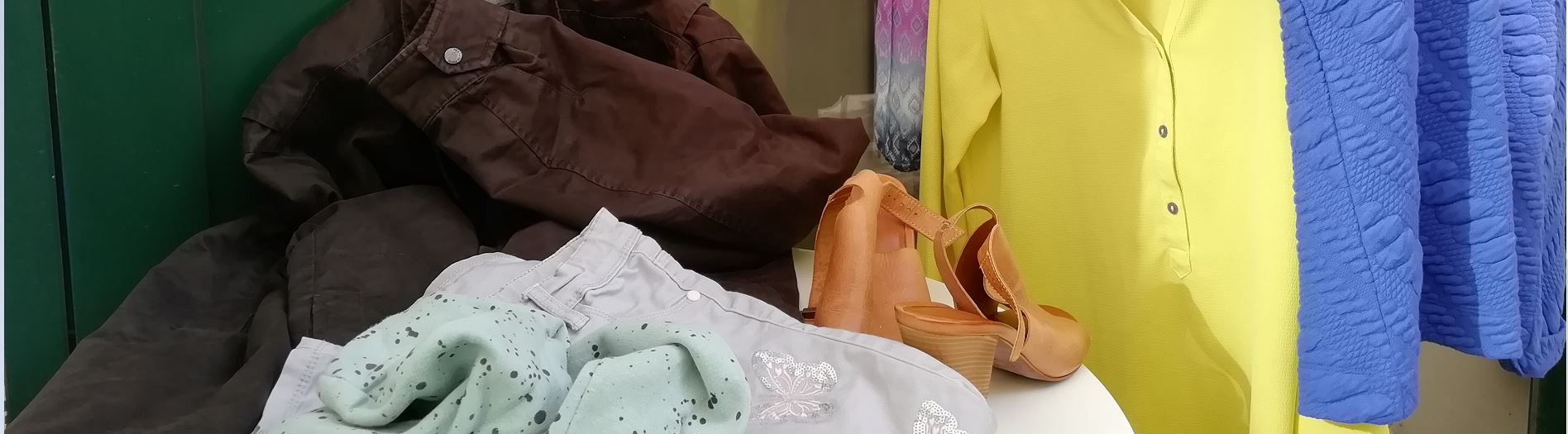 Kleidung für Frauen, Männer, Jugendliche (keine Kinder!) Kleidung mitbringen: max 10 Teile, gewaschen und gebügelt Kleidung aussuchen, anprobieren und mitnehmen was gefällt.