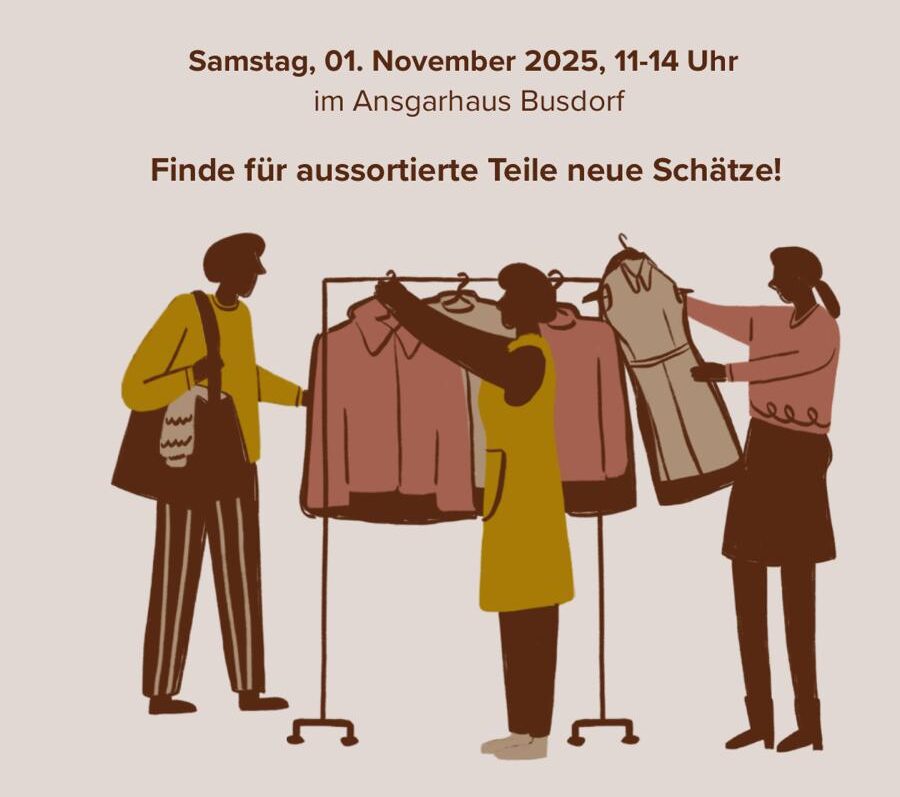Herzliche Einladung zum Klamottentausch für Jung & Alt im Wilhelm-Hansmann-Haus! Jeder darf zum Tauschen bis zu 10 Kleidungsstücke abgeben, zusätzlich kann man Schmuck, Taschen und Schuhe mitbringen. Stöbern, anprobieren und sich etwas mitnehmen darf jeder, der vorbeikommt - auch spontan ohne etwas abzugeben! Freut euch auf leckere Waffeln, Kaffee, Softdrinks und den Infostand vom foodsharing […]