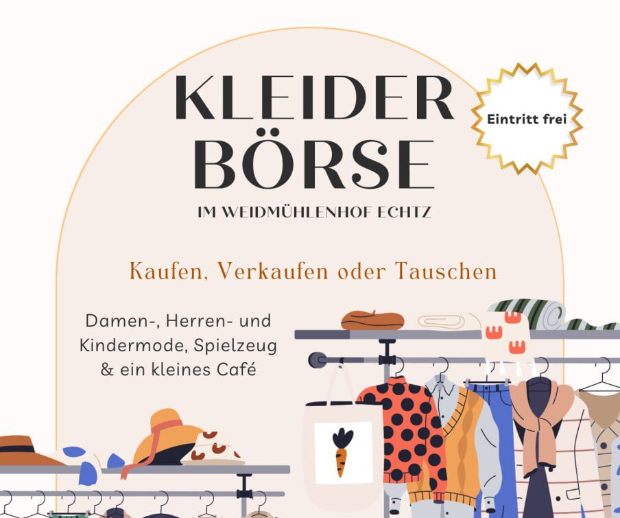 ![]() Kleiderschrank voll und trotzdem nichts anzuziehen? Lust auf neue Lieblingsteile und Nachhaltigkeit? Die vhs lädt zum Kleidertausch ein: Gut erhaltene Kleidungsstücke mitbringen, in Ruhe Stöbern, Anprobieren und Neues mit nach Hause nehmen. Das Angebot reicht von Kindergrößen über normale Größen und Sondergrößen bis hin zu Accessoires, Schuhen und Taschen. Von Klein bis Groß sind alle […] Liebe Tauschfreunde! Am 05.10.2025 ab 12 Uhr ist es wieder soweit: Kleidertausch-Party im Vogelhaus!Bringt uns eure gut erhaltene, saubere Kleidung gerne schon am Wochenende vorher vorbei – so können wir alles entspannt vorbereiten. Alle Größen sind willkommen – auch Herrenkleidung!Ihr habt nix zum Tauschen? Kein Problem! Stöbern und Mitnehmen ist trotzdem erlaubt. So läuft’s:Keine Tausch-Regeln: […] |