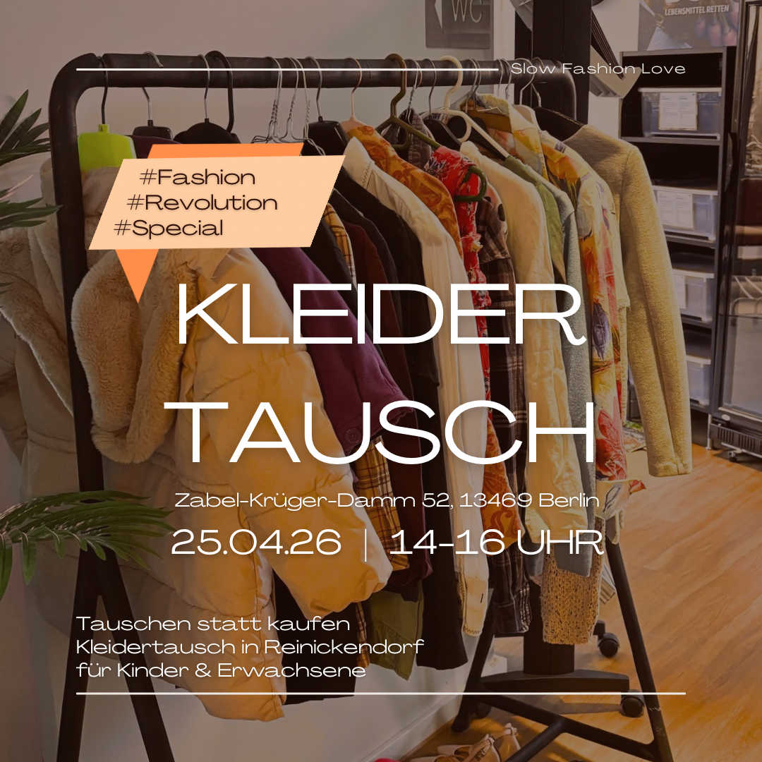 Kleidertausch-Stange an der Kleiderei Köln Passend zum Saisonwechsel steht vom 22. bis 25. April, während der Fashion Revolution Week, unsere kostenlose Kleidertausch-Stange in der Kleiderei Köln für euch bereit. Kommt vorbei, stöbert, tauscht eure Lieblingsteile 1:1 und entdeckt vielleicht neue Lieblingsstücke – so oft ihr wollt, während unserer regulären Öffnungszeiten. WANNA SWAP? 👕♻️ So funktioniert’s: […]